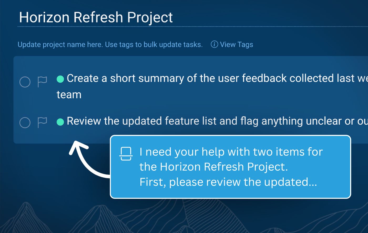 Meeting notes, class notes, brainstorms, reminders. Drop them in. OneBin spots the action items and turns them into tasks automatically, keeping the important parts from getting buried.